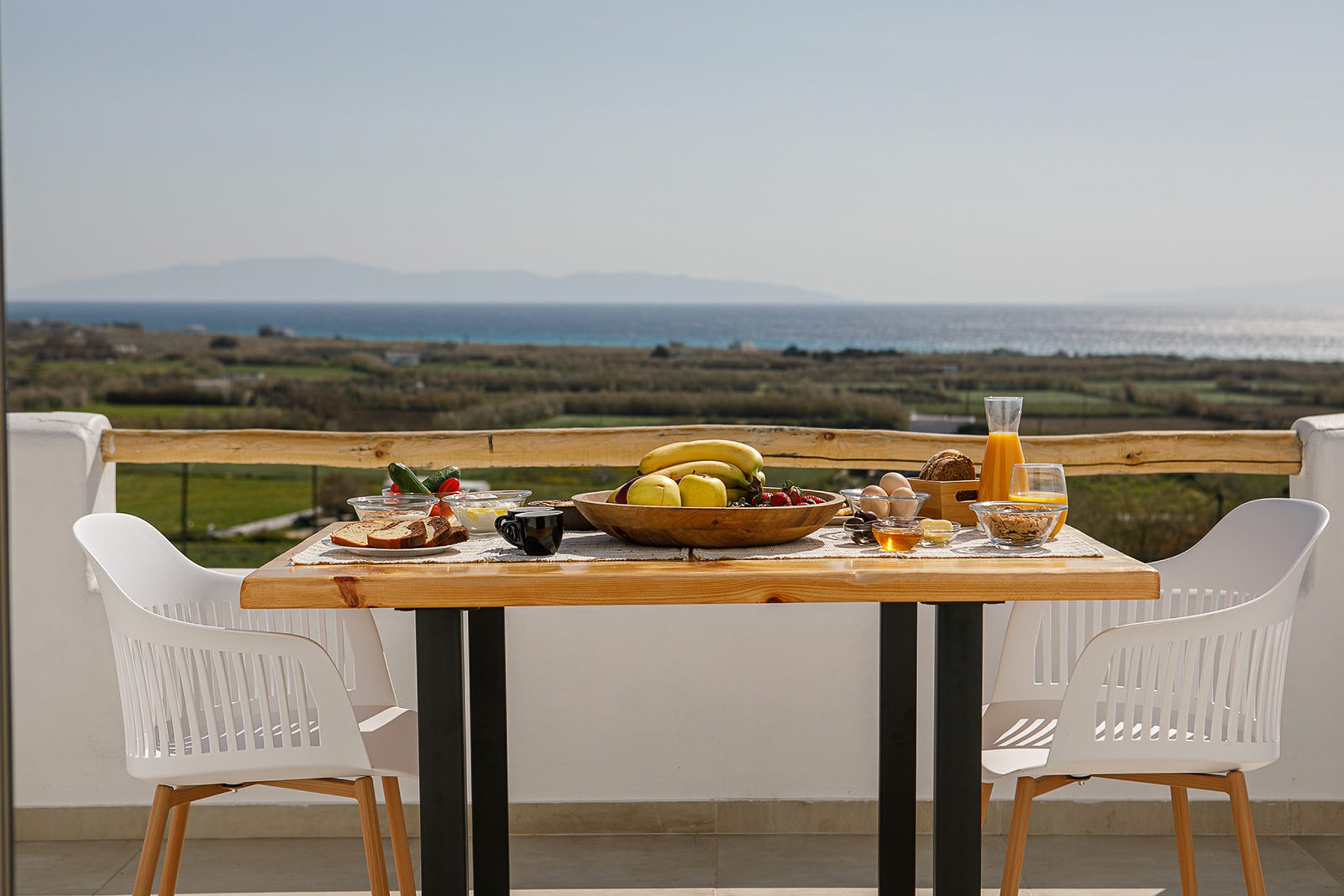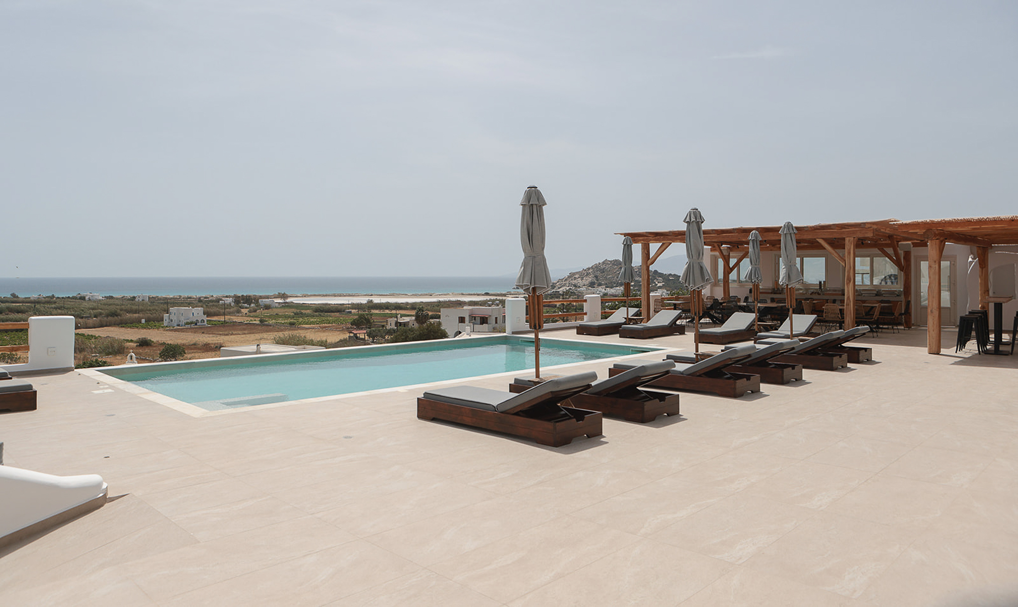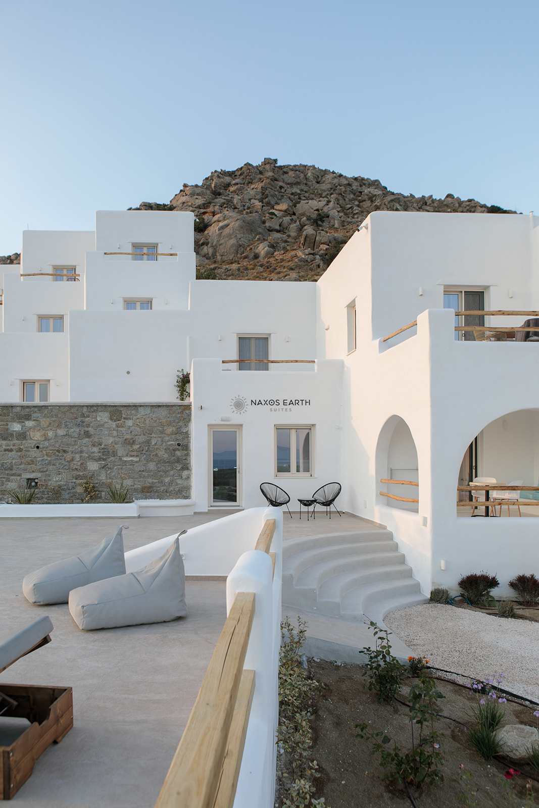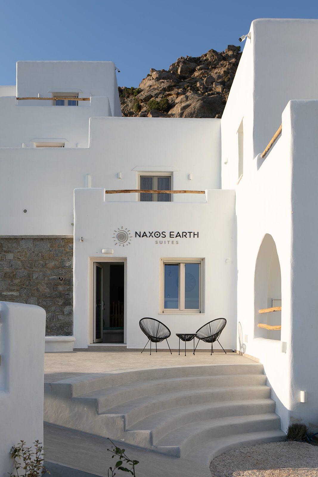 In an idyllic location, on the southwest coast of Naxos, the newly built accommodation naxos earth suites is located in the area of Mikri Vigla and is a haven of peace and relaxation