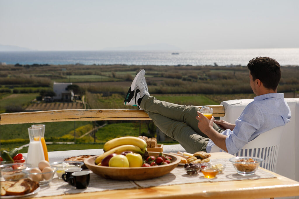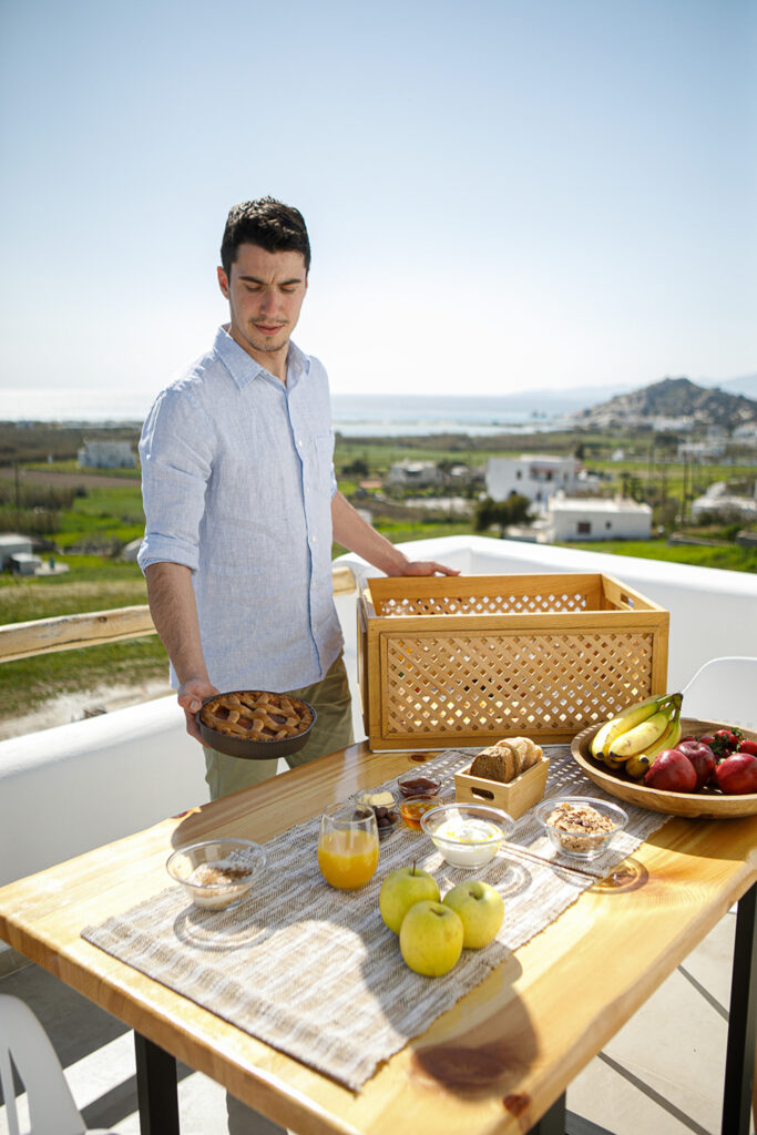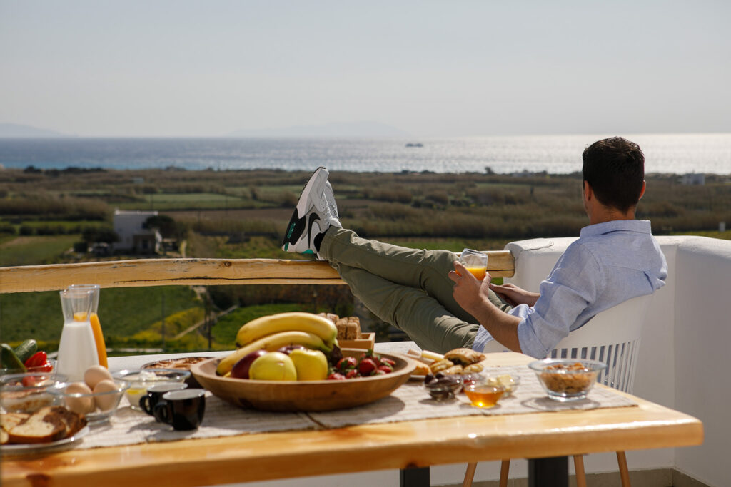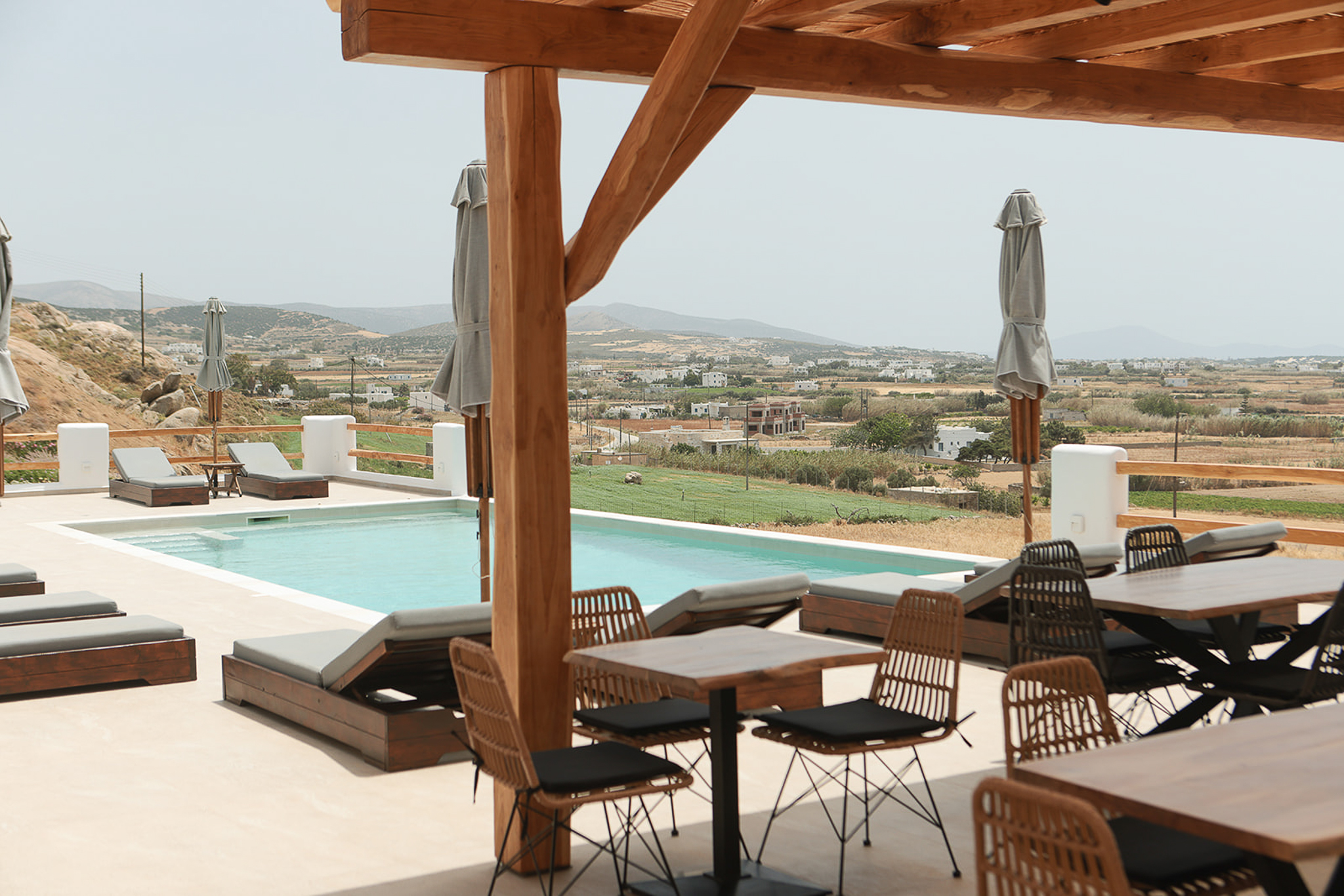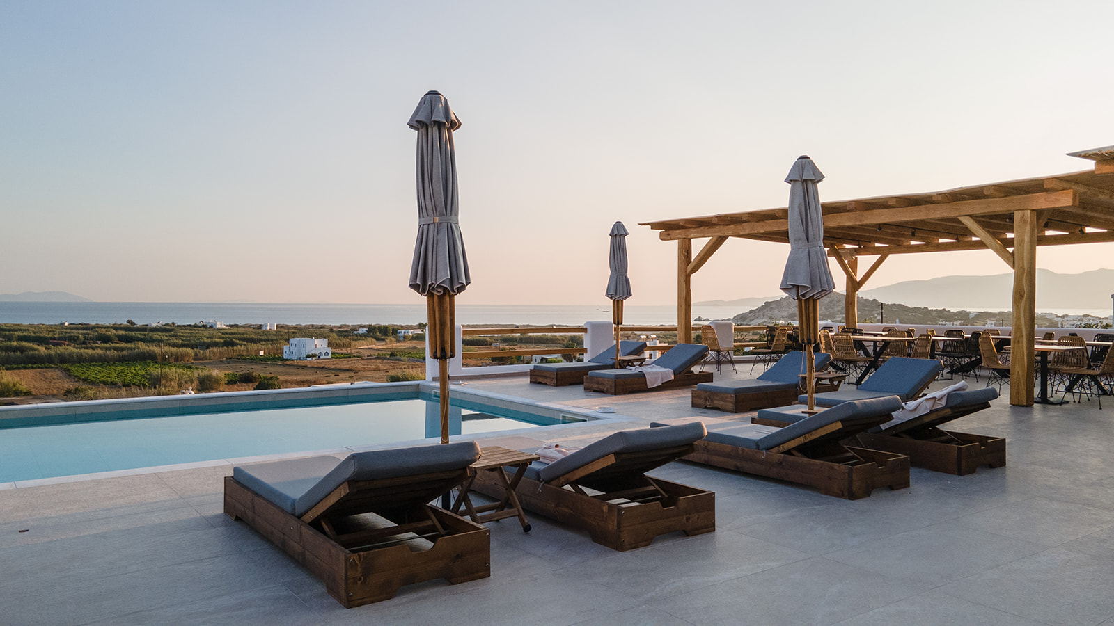 In an idyllic location, on the southwest coast of Naxos, the newly built accommodation naxos earth suites is located in the area of Mikri Vigla and is a haven of peace and relaxation