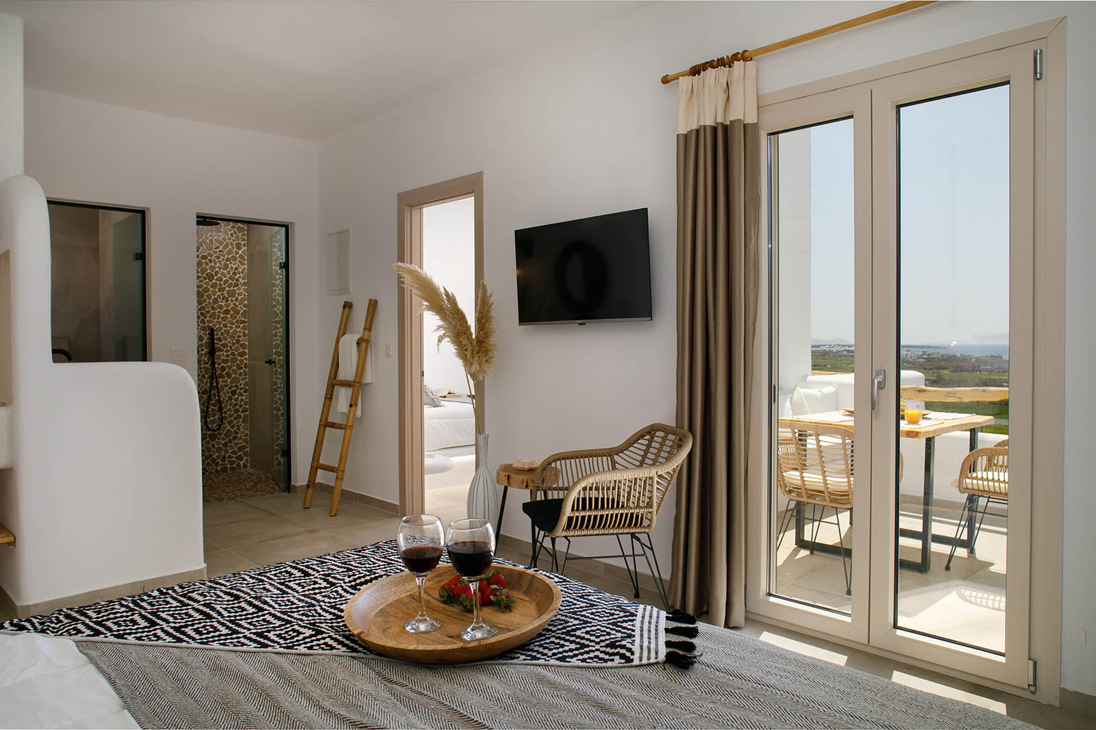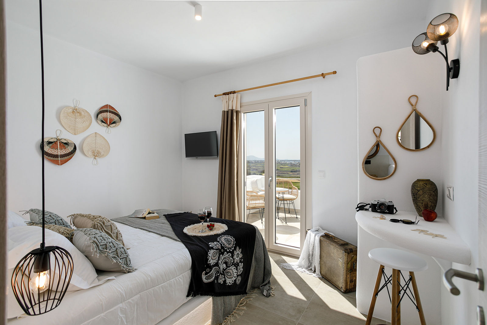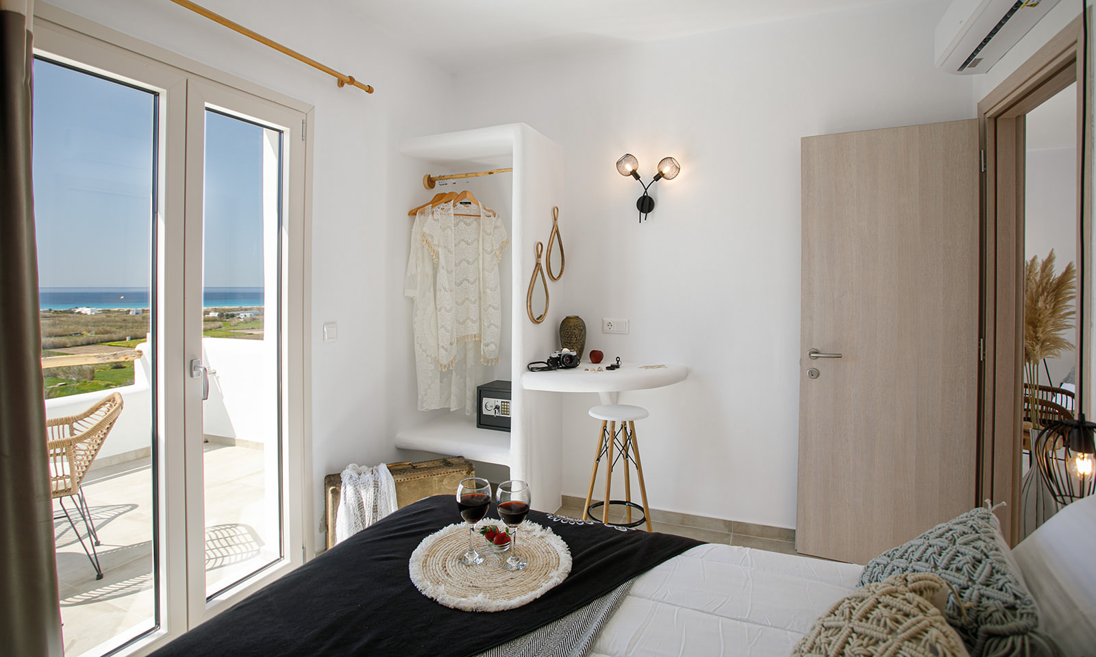 With its absolute sea view, it offers an unforgettable experience of relaxation and hospitality. The minimalist details that decorate the interior reflect the Cycladic beauty and the best elements of the luxurious island life.